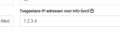 Er kunnen meer IP adressen toegestaan worden, deze dienen dan met een komma van elkaar gescheiden te worden. Hierna worden de actuele afspraken getoond op het bord. Om de lijst overzichtelijk te houden worden de eerstvolgende 5 afspraken per locatie getoond. De locaties staan onder elkaar aan de linkerkant van het scherm.