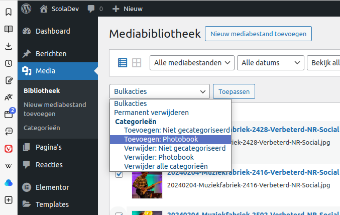 Hierna kunnen de foto's worden gecategoriseerd. Dit kan één voor één maar via de bulkfunctie kunnen weer foto's tegelijk van een categorie worden voorzien.