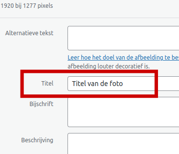 Elke foto heeft een titel, standaard is dat de naam van het bestand. Om dit aan te passen open je de foto vanuit het media overzicht: