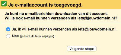 Je krijgt nu de melding te zien dat het toevoegen geslaagd is. Krijg je een andere melding te zien dan zijn mogelijk de ingevoerde gegevens onjuist. Wanneer je ook e-mails wil versturen via Gmail volg je de volgende stappen.